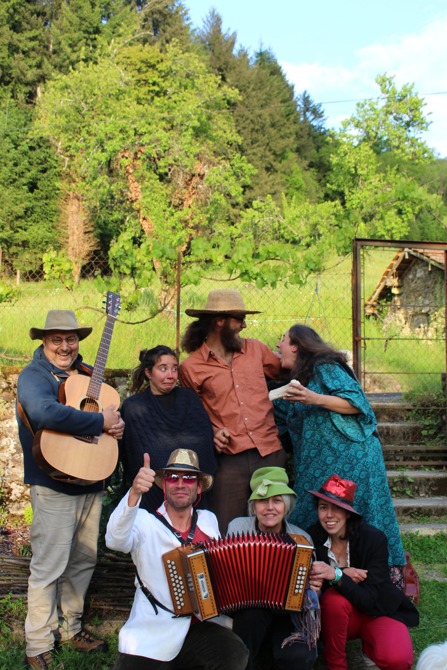 On prend des musiques qui ne sont pas trad à l’origine, et on voit si elles peuvent être dansées en bal folk… Les critères pour chanter une chanson : qu’elle soit belle et nous plaise bien sûr, que les paroles nous inspirent (sinon, on les change !), que ce soit polyphonique, et bien sûr dansable en bal, directement ou après arrangement… Bon, si y’a un chant qu’on aime trop mais qui ne passe pas bien en danse, on invente une chorégraphie ! Ah oui idéalement nos chansons sont libres de droits 🙂 Et on en écrit et compose aussi !!