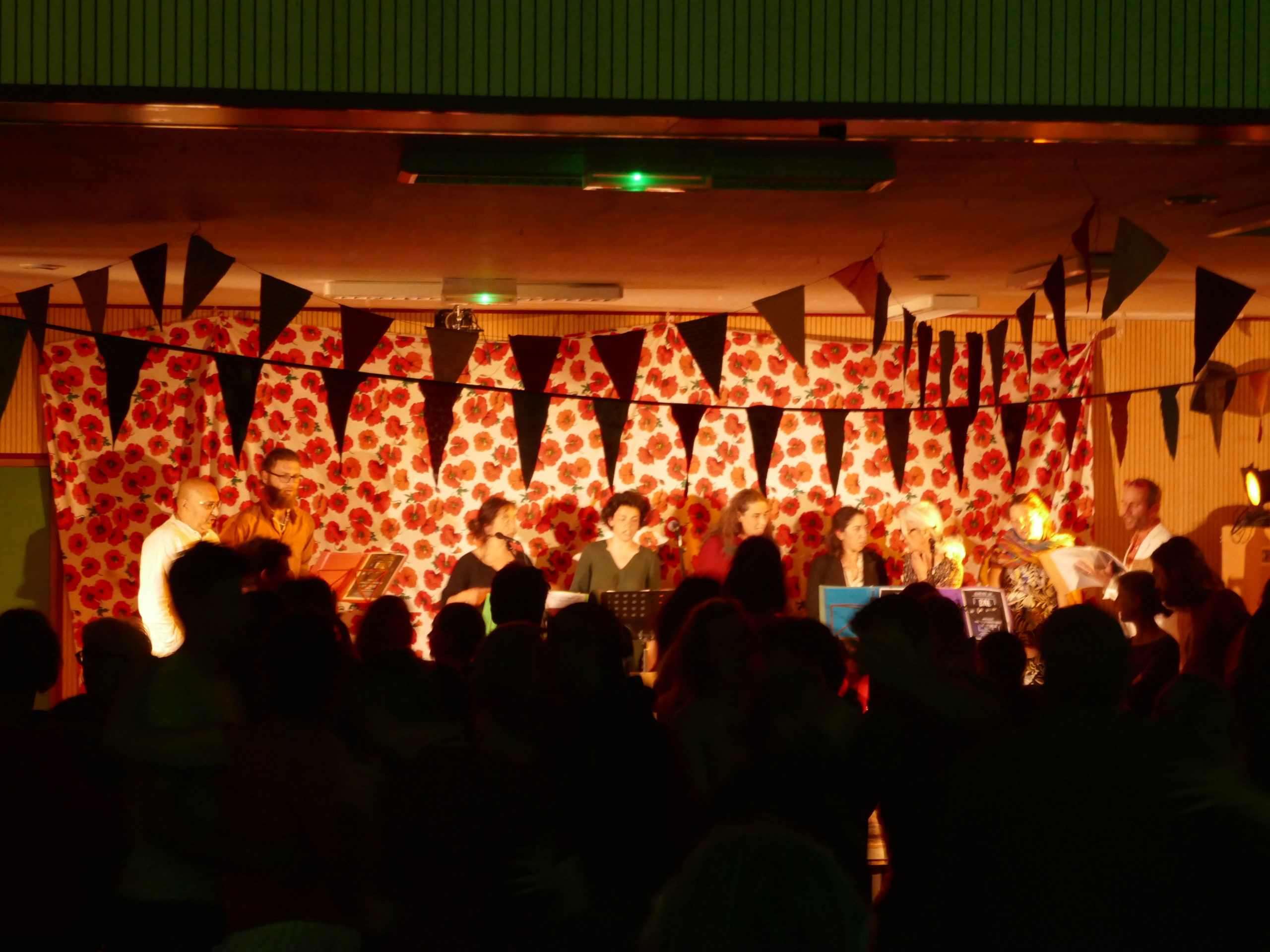Tentatives pour créer un espace d’écoute et de silence pour le début des chansons : si on n’entend pas les notes de départ à cause du bruit de la salle, on se transforme pour de vraie en chorale du chaos ! 😉