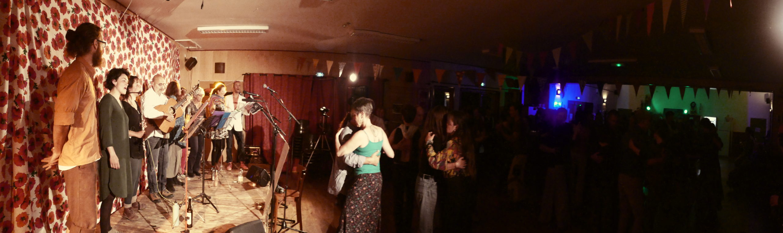 Première tentative de « chœur de bœuf« , improvisé : animer a capella un inter-plateau et un bœuf lors d’un bal où on vient danser… Conclusion : l’inter-plateau, c’est faisable, mais le bœuf en plus, après la soirée de danse, ça fait beaucoup 😉